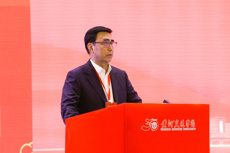 兄弟高校代表、郑州美术学院校长石品在致辞中向黄河交通学院建校30周年表示祝贺,他强调,虽学科领域不同,但服务区域发展的目标一致,他期待与交通类高校携手探索“艺术+交通”的融合发展路径,共同为黄河流域交通运输事业绿色化、智能化、美学化发展贡献力量。